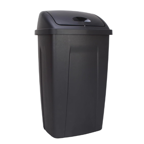 13 Gallon Plastic Swing Top Kitchen Garbage Trash Can, Black