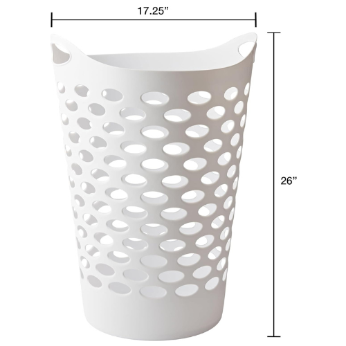 VENTED FLEX LAUNDRY BASKET – Freestanding laundry basket promotes airflow with an aerated design.