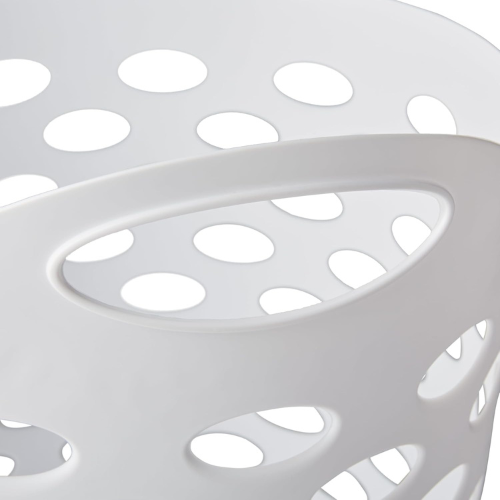 VERSATILE LAUNDRY BIN – This round plastic bin makes a storage basket for closets, bathrooms, and playrooms.