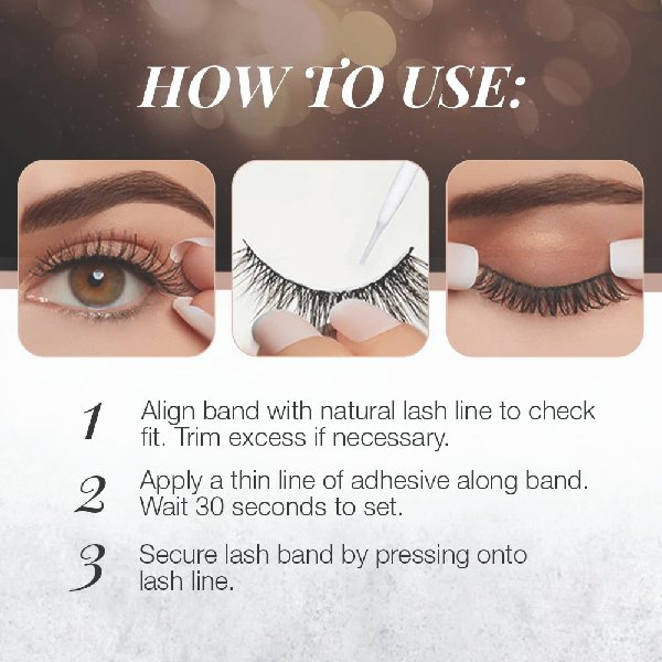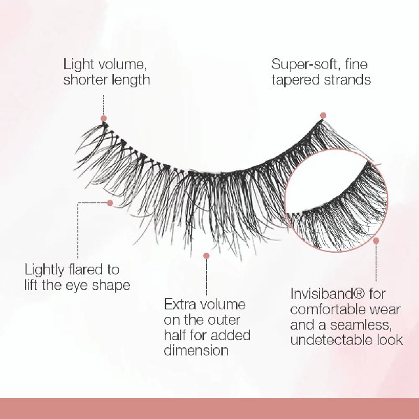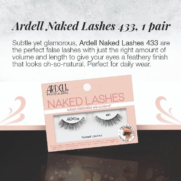 Extra Pretty Lashes: Look at you lookin’ all dolled up! But isn’t something missing? Give your eye makeup more natural definition and style with the Naked Lashes 433 from Ardell. Light volume with a little extra on its outer half for some added dimension. Shorter lash length so the natural beauty of your lash line can shine through. Fancy Flared Silhouette: The Ardell Naked Lashes 433 features a flared lash shape. Shorter in the inner corners and grows longer in the outer corners. This enhances and lifts your lovely eye shape and gives it more life and character. Now, you’re glowing! Lavish Lash Fibers: The Ardell Naked Lashes 433 is fitted with pillowy soft and lifelike fibers that just move and sway with a natural flow. Be delighted with a dazzling dash of charm! Oh and they’re cruelty-free and vegan-friendly too. Relaxed and Reliable Fit: We got your back! The Ardell Naked Lashes 433 features patented Invisiband technology. This gives you a super reliable fit that just blends into your natural lash line without a trace. Super comfy too so you can be confident and carefree all day long!