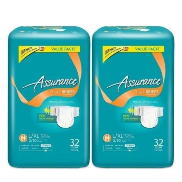 Assurance Stretch Briefs with Tabs, Large/XL, 32 Count (2 Pack)