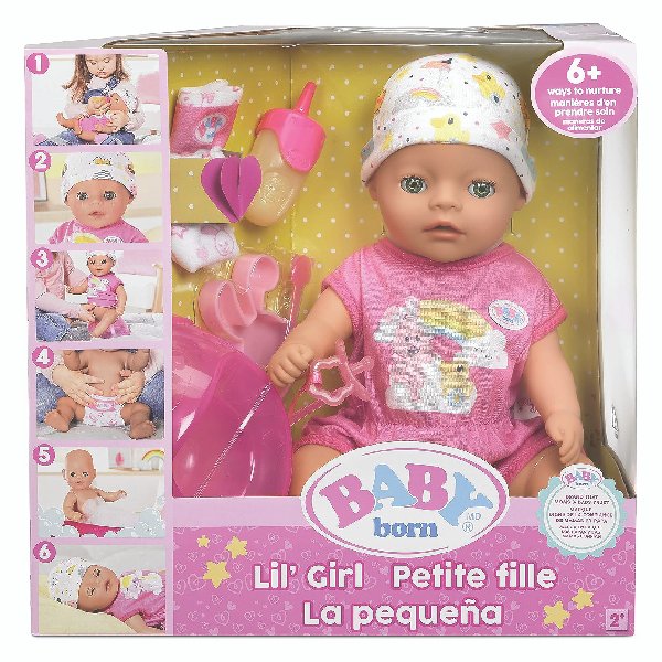 Baby born has touched the hearts of millions of children around the world, making them proud doll parents. Enjoy a baby of your very own with the Baby born Interactive Baby. This Lil Girl baby doll offers lots of imaginative play for tiny tots aged 2 years onwards. The smaller version of our BABY born doll comes with over 6 functions including drinking water, crying tears, going to the potty and she can even go in the bath, so is lots of fun for little mommies and daddies.