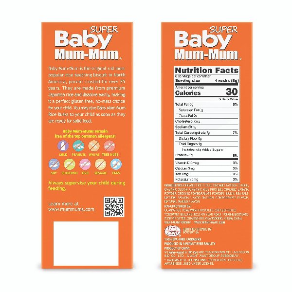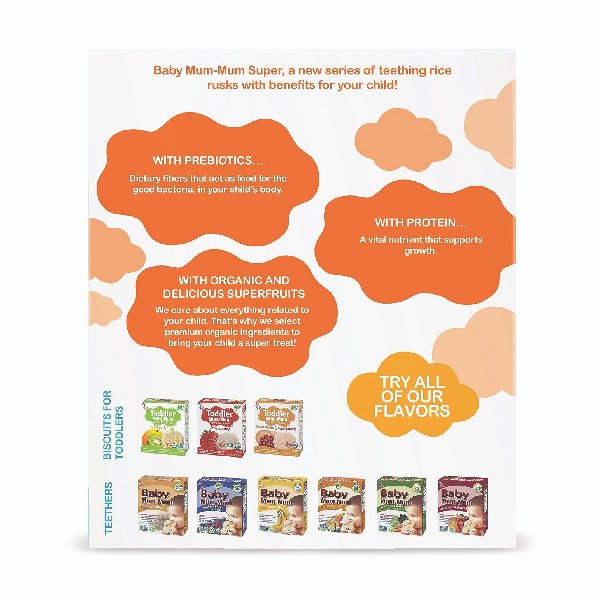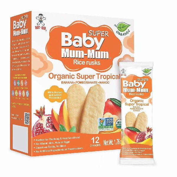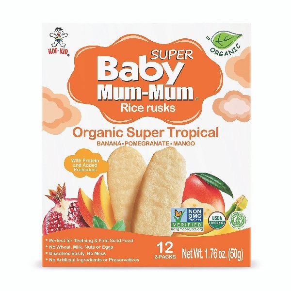 These organic teethers are a delicious choice for your happy baby’s first solid food. They’re allergen-free with no trans fats, artificial ingredients or preservatives & no added fats or oils. They dissolve easily for a no-mess snack!