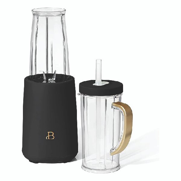As easy as press and twist. The Beautiful 12 Piece Personal Blender will be your go to smoothies, sauces, salsas and more. Take your smooties anywhere in the 16oz ToGo Travel cup with handle and Drew’s signature No Drippy Sippy flexible straw and twistoff lid. Featuring a durable stainless steel blending blade, grinding blade, and 285 peakwatt motor that can even grind up coffee beans and spices.