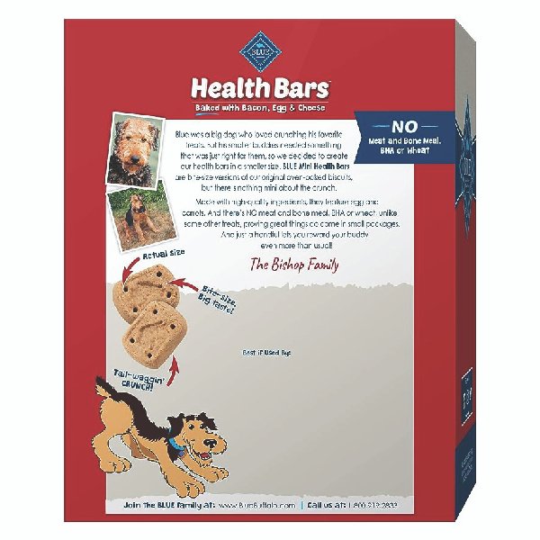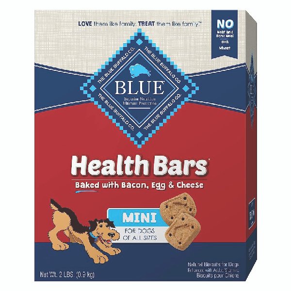A favorite of health-conscious pet parents, Blue Buffalo Health Bars deliver the great taste and satisfying crunch our furry friends love, but without the corn, wheat and soy known to cause allergic reactions in some dogs. Made with the finest natural ingredients, fortified with omega 3 and antioxidants, and oven-baked for a big crunch, these treats are as healthy as they are tasty!