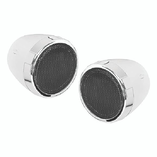 Speakers – The two 3-inch silver full range speakers have adjustable brackets that will fit handlebars ranging from .75” to 1.5”.
