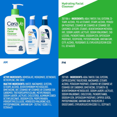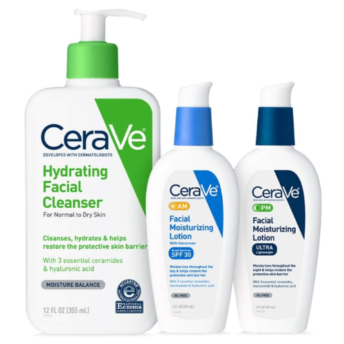 Includes CeraVe Hydrating Facial Cleanser, AM Facial Moisturizing Lotion with Broad Spectrum SPF 30, and CeraVe PM Facial Moisturizing Lotion