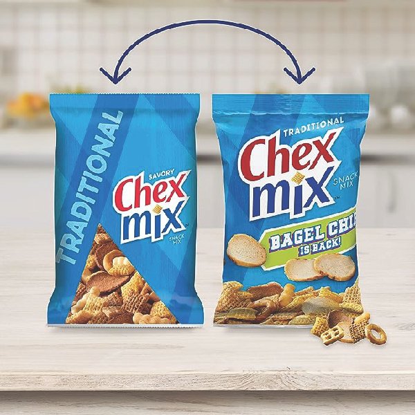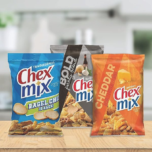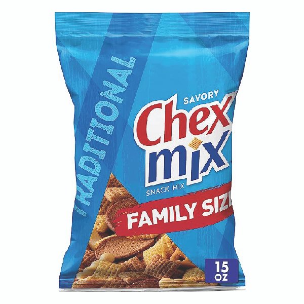 Your taste buds are wanting something savory. Your mind is bored with ordinary snack foods. Your hand reaches for Chex Mix Traditional Savory Snack Mix and voila … snack craving solved. Chex Mix party mix gives you a deliciously unpredictable combination of shapes, tastes and textures in every handful. With 60% less fat than regular potato chips, this snack mix makes a great choice for after-school snacks, office snacks or travel snacks. Plus, a family size bag means there’s enough tasty fun to share.