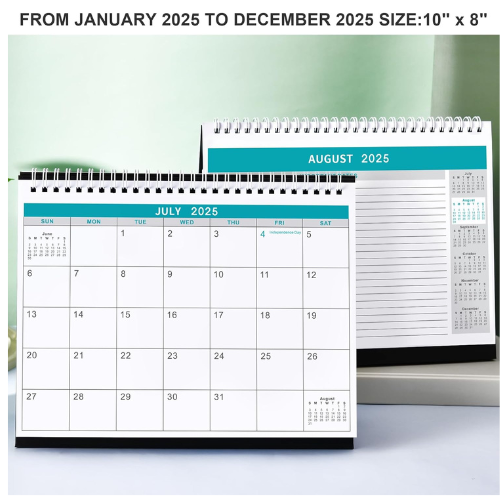 DESK CALENDAR HELP ORGANIZE YOUR YEAR – 2025 Desktop calendar (10″ x 8.3″ ) from January 2025 to December 2025, with a total of 12 pages. Monthly overview in every page can help you improve your life efficiency and arrange your time more reasonably. You can record or clearly find everything you need to do in this 2025 desk stand up calendar.