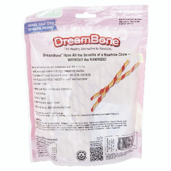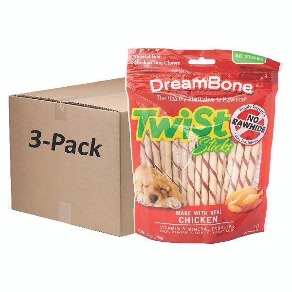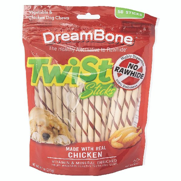 RAWHIDE-FREE: DreamBone Twist Sticks have all the benefits of a rawhide chew – without the rawhide. REAL CHICKEN: Made with real chicken and wholesome vegetables for a scrumptious taste dogs can’t resist. ENRICHED WITH VITAMINS AND MINERALS. HELPS MAINTAIN HEALTHY TEETH: Chewing helps maintain healthy teeth and gums. TWIST SHAPE: Fun-shaped chews your dog will love. (3 PACK)