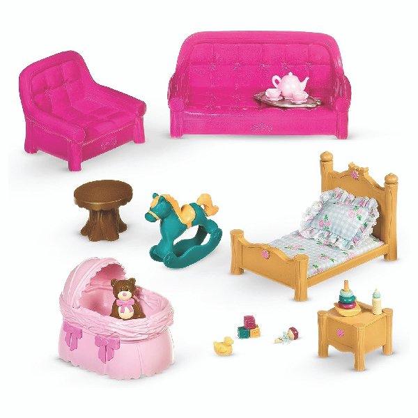 Welcome to Honeysuckle Hollow where all the woodland creatures work together to take care of each other and their environment. Living room set includes 23 pieces.