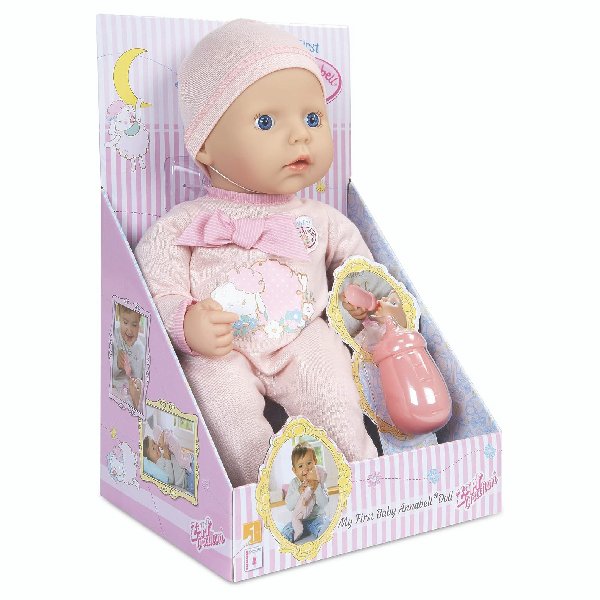 Baby Annabell is the lifelike baby doll that looks, feels, and acts like a real baby. Her soft body and adorable face make her the perfect first companion for little ones. She loves to be cuddled and taken care of, just like a real baby! Get started caring for a sweet baby of your very own with My First Baby Annabell.