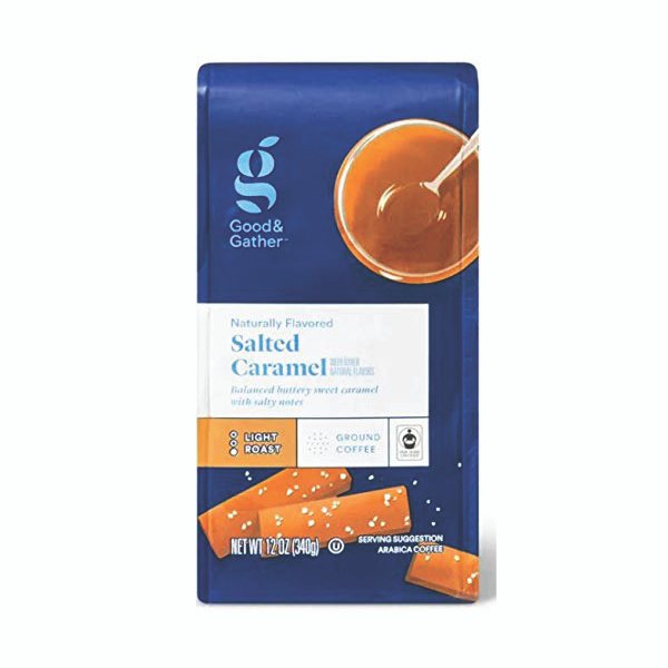 Naturally Flavored Salted Caramel Light Roast Ground Coffee – 12oz (One Package)
