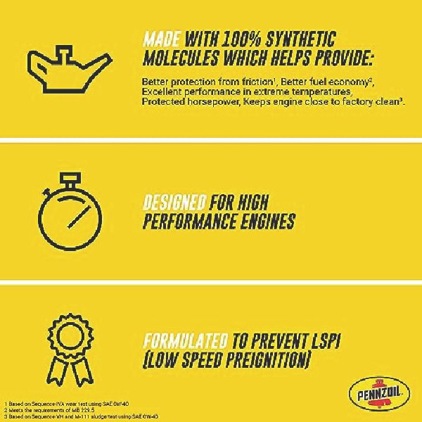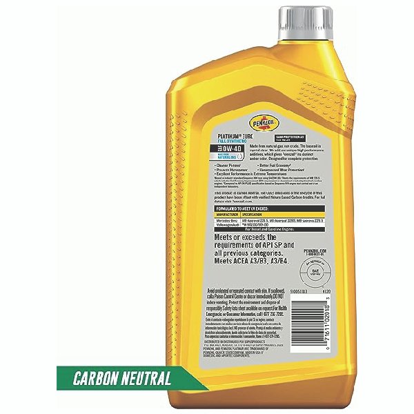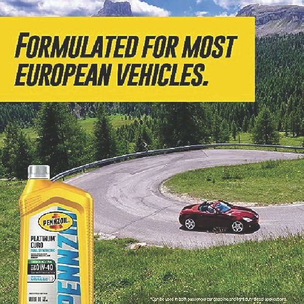 Pennzoil Platinum Euro 0W-40 Full Synthetic motor oil is made from natural gas, not crude. Designed for complete protection for top engine performance, Pennzoil Platinum Euro is formulated for most European vehicles, including Mercedes-Benz, VW, Porsche, and Audi vehicles (consult and follow your owner’s manual). Pennzoil Platinum Euro exceeds the most stringent European car manufacturer requirements for cleanliness and protection, based on Mercedes and VW specifications.