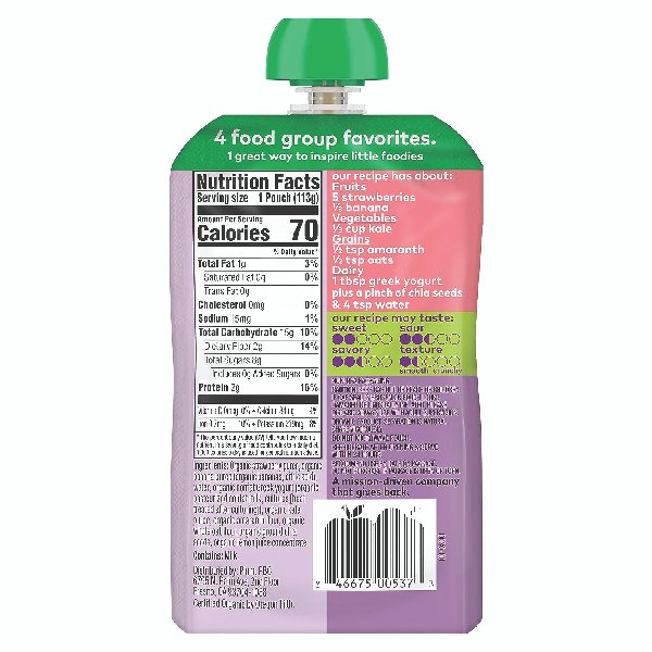 Mighty 4 pouches, a puree of organic fruits, veggies, protein and grains, are the perfect snack for toddlers. Every pouch is filled with essential nutrients from 4 food group favorites to fuel your active tot. And with amazing flavor combos squeezed into one pouch, we make it easy for your mighty one to enjoy on-the-go goodness anytime.