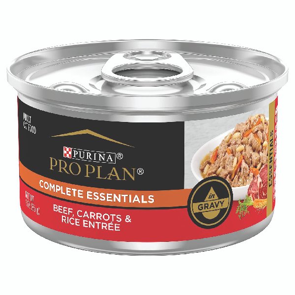 Twenty-Four (24) 3 oz. Pull-Top Cans – Purina Pro Plan High Protein Cat Food Wet Gravy, Beef, Carrots and Rice Entree. High protein cat food formula includes antioxidants for a healthy immune system and omega-6 fatty acids and vitamin A to nourish skin and coat. Adult cat food with gravy made with real beef for a taste cats love and no artificial colors or preservatives. Gravy cat food with rice made with vitamin A and taurine to support healthy vision. Provides 100 percent complete and balanced nutrition for adult cats and an optimal protein level for maintaining an ideal body condition