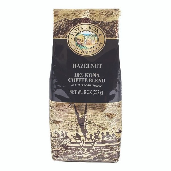 Royal Kona 10% Kona Coffee Blend, Hazelnut Flavor – Ground Coffee 8 Ounce Bag