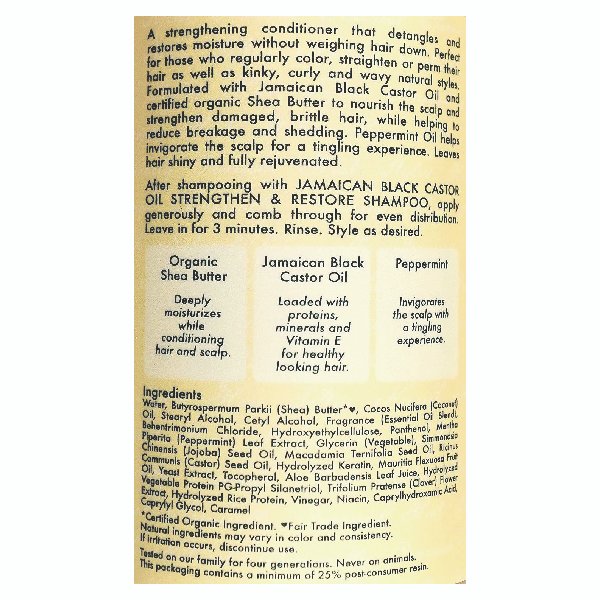Strengthen and Restore. Includes Shea Butter, Peppermint and Apple Cider Vinegar. Sulfate-Free and Color-Safe. Made in USA. Size: 33.8 FL OZ (1 Liter) Each Bottle.