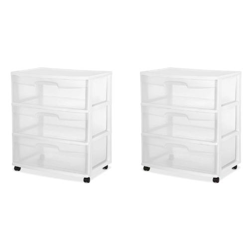 Sterilite Home 3 Drawer Wide Storage Cart Portable Clear, (2 Pack)