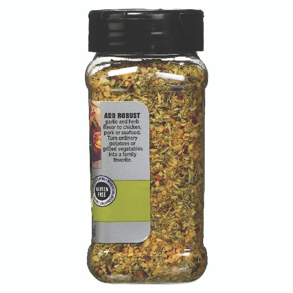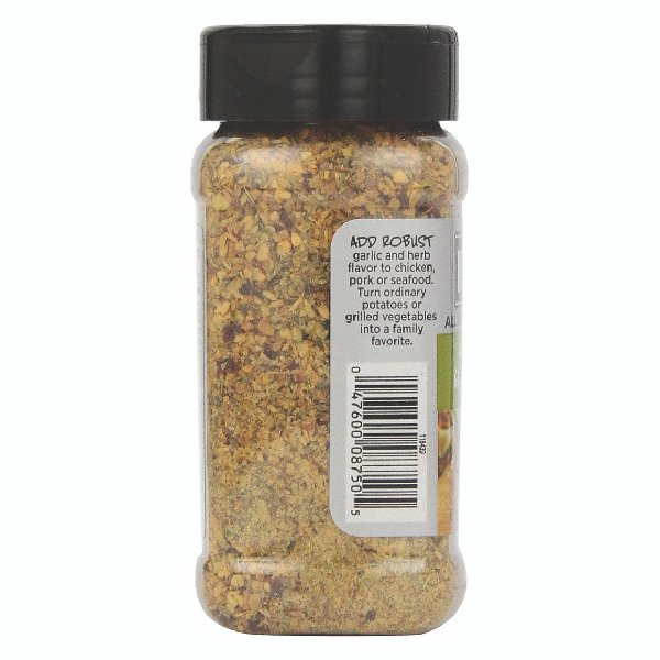 Adds robust garlic and herb flavor to all your favorite meals. Perfect for chicken, port, seafood, potatoes or vegetables. Gluten free.